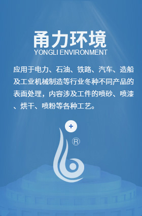 可廣泛適用于電力、石油、鐵路、汽車、造船及工業機械制造等行業冬種不同產品的表面處理,內容涉及工件的噴砂、噴漆、烘干、噴粉等各種工藝。